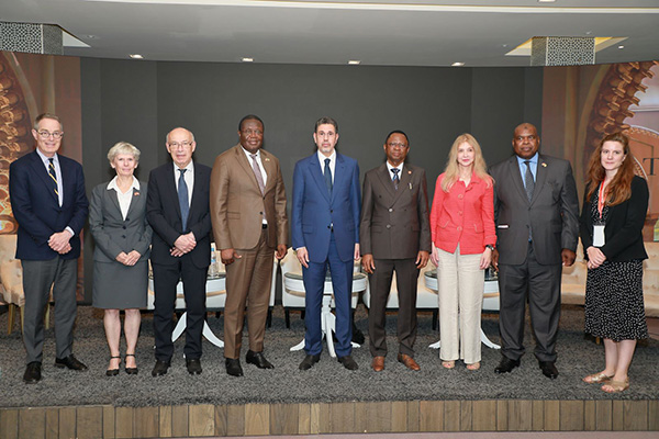 M. Christophe Soulard premier président de la Cour de cassation de France, avec l’ancien et le nouveau président de l’AHJUCAF, MM. les présidents Adossou et Abdenabaoui, et M. Jean-Paul Jean, élu président du Conseil scientifique.