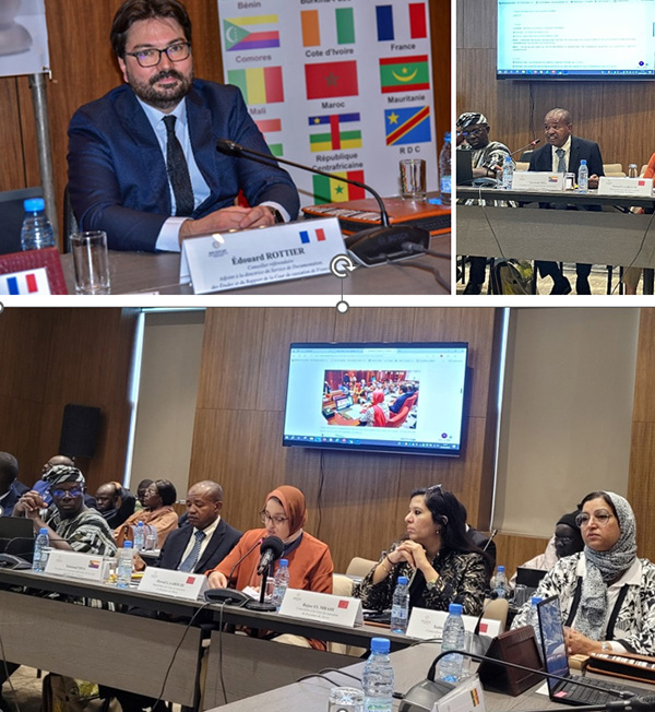 Une présentation a ensuite été faite, chacun(e) de leur dispositif national, par les conseillers Jean-Aloïse Ndiaye pour le Sénégal, Wilfrid Araba pour le Bénin, Dorsaf Laaboudi et Rajae El Mrahi pour le Maroc, par le président de chambre Youssouf Msa pour les Comores.