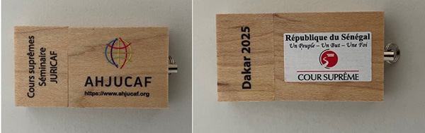 Une clé USB de l’AHJUCAF intégrant une documentation réalisée avec la Cour de cassation de France, comprenant références, juridiques, rapports, articles et supports de présentation, a été remise à chaque participant.